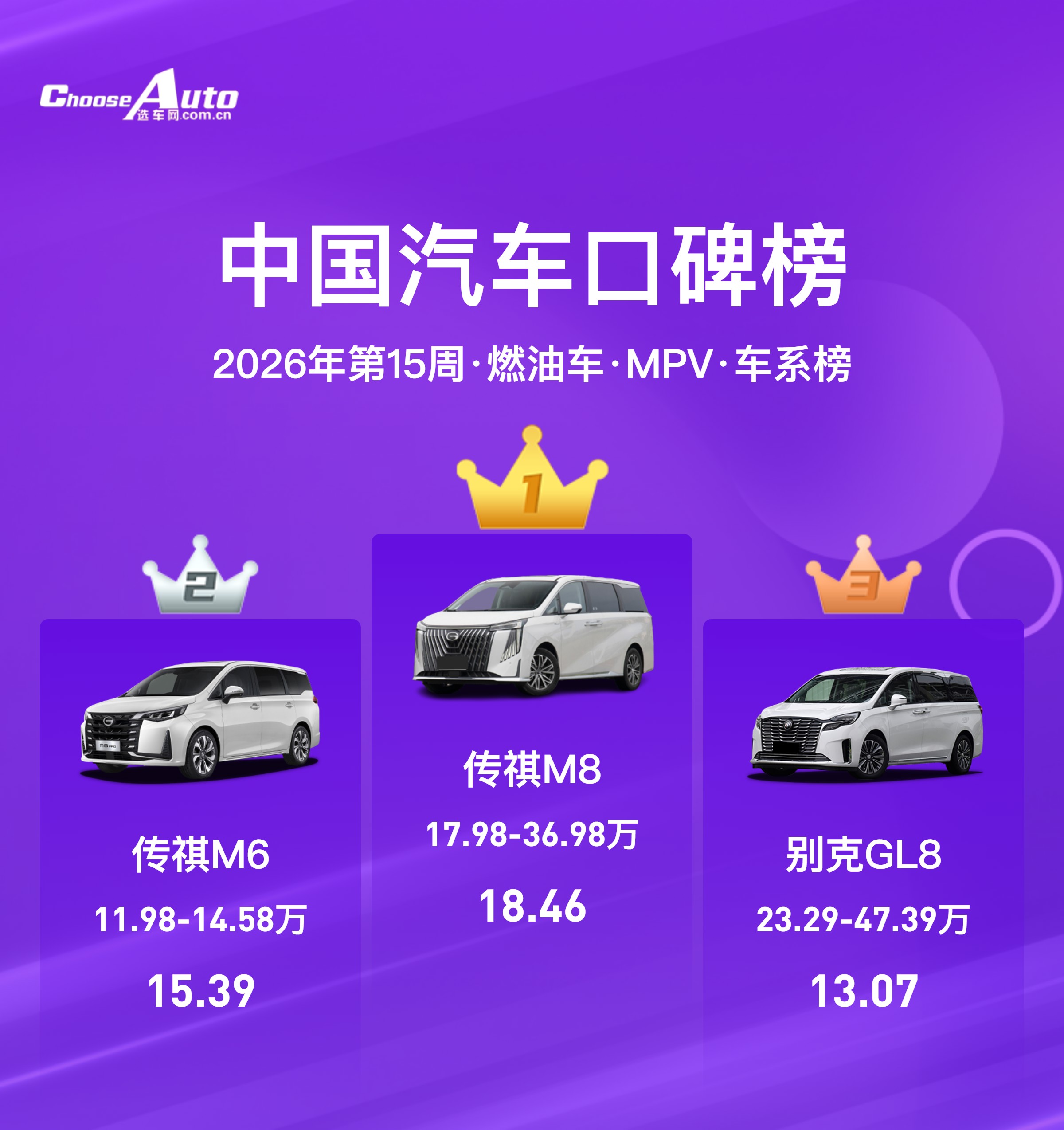 MPV 榜单中,传祺 M8 以18.46的口碑分稳居榜首,传祺 M6 位列第二,别克 GL8 位居第三。这一滑名冲破了群众对 MPV 市集 “合伙为王” 的固有剖析,也印证了国产高端 MPV 的崛起。