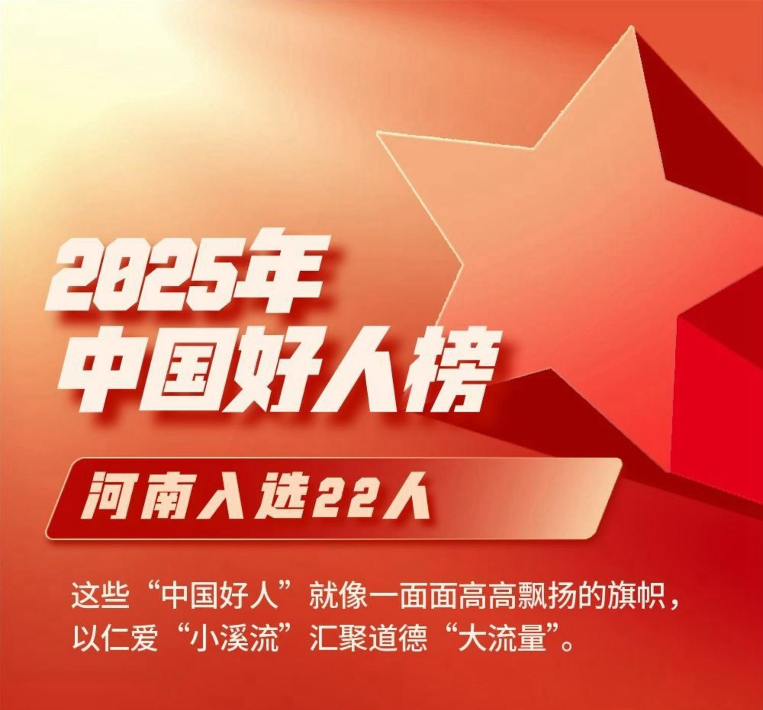 河南省共有22东说念主荣登“中国好东说念主榜”
