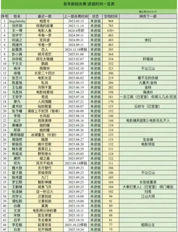 那张“未进组时长表”一出来,很多人第一反应不是八卦,是心里咯噔一下:原来内娱现在已经卷到这种程度了,演员不进组,不是“休息一下”这么简单,分分钟就被贴上“凉了”“没戏拍”的标签,然后评论区开始自动脑补,资本抛弃了,资源断了,人没了。