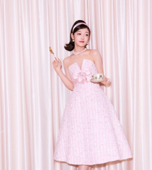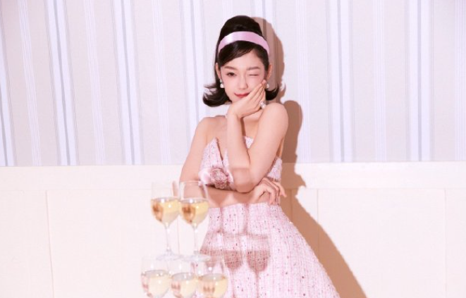 希林娜依高的粉粉小妆造,