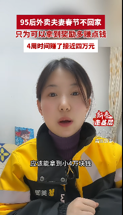 据半岛齐市报报说念,一双因创业身背20万元债务的“95后”年青细君,春节本事不回桑梓,在山东青岛送外卖,4周展望能拿到4万元。