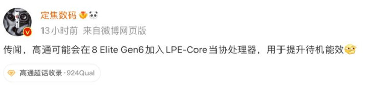 骁龙8E6系列搭载高通自研的Oryon CPU架构,同期中枢布局也从之前的2+6,酿成2+3+3,更强调多核协同,这很要道。
