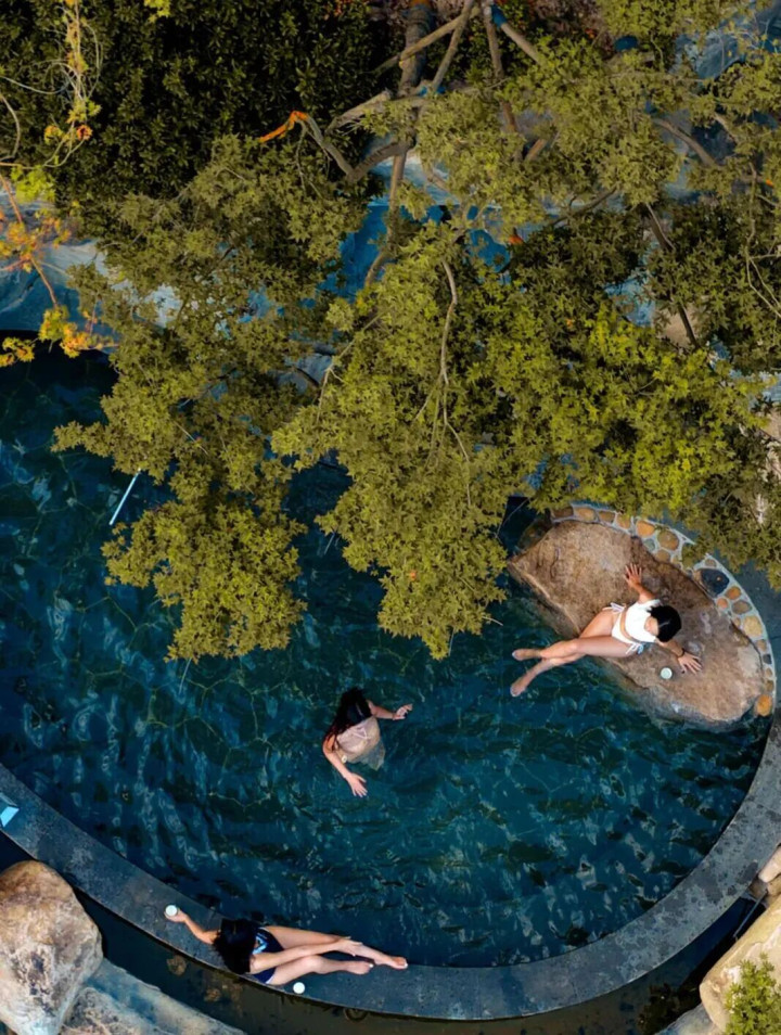 这里的温泉太有氛围感了!你不错钻进石林环抱的奥妙池子,感受大当然的静谧;或是往自然溶洞的汤池一坐,看烟岚裹着泉雾在身边缭绕,如梦似幻;又或是踏上乌木风桥,挑个面朝溪流的花瓣池窝着,听着潺潺水声,径直快乐到骨子里。
