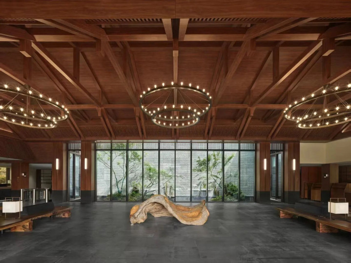货仓由一栋斯文的主楼与一栋温馨的孤立亲子楼巧妙组成,领有100间格调互异的温馨客房与套房。尤为值得一提的是,大部分房间皆配备了通透的落地窗,将庭院里婆娑的竹影或远山上缥缈的潸潸毫无保留地引入室内,让客东谈主足不窥户便能尽享山水之好意思,入住的舒按捺与体验感皆极高。