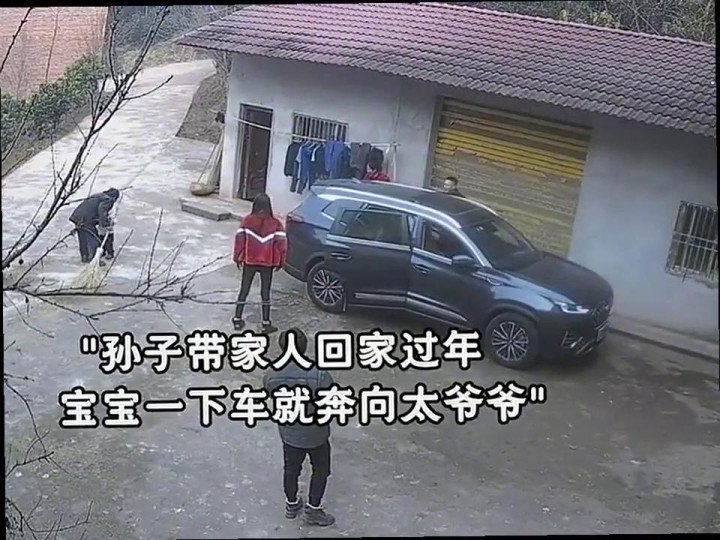 孙子带家人回家过年,宝宝一下车就奔向太爷爷。孙子心领神会的接过扫帚,帮助爷爷扫地。网友:这就是回家的意义。好有感的幸福画面。姐姐开车回家过年,弟弟村口手舞足蹈迎接。网友:这大概就是亲人回家团圆的喜悦吧。