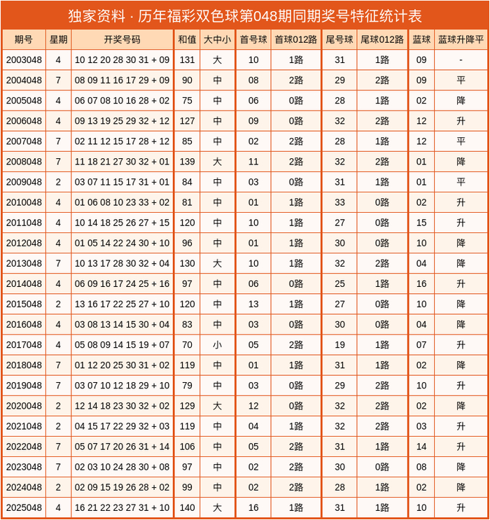 和值:前年同时和值开出140,步地呈现为大数。对历史同时中的和值大中小步地进行统计,咱们发现:中数开出17次、大数开出5次、一丝开出1次。本期更看好【中数】和值开出,参考和值在79傍边。